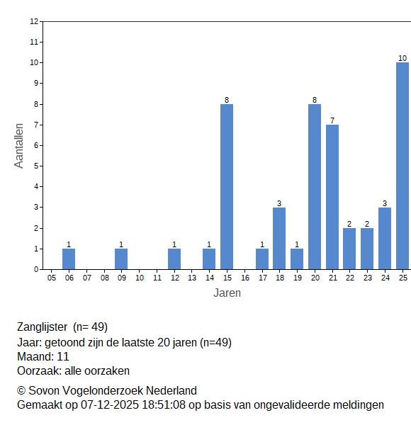 Op deze pagina zie je de aantallen dode vogels die gemeld zijn via de dode vogel invoer. Alle meldingen (incl. ongevalideerde) zijn daarin opgenomen.