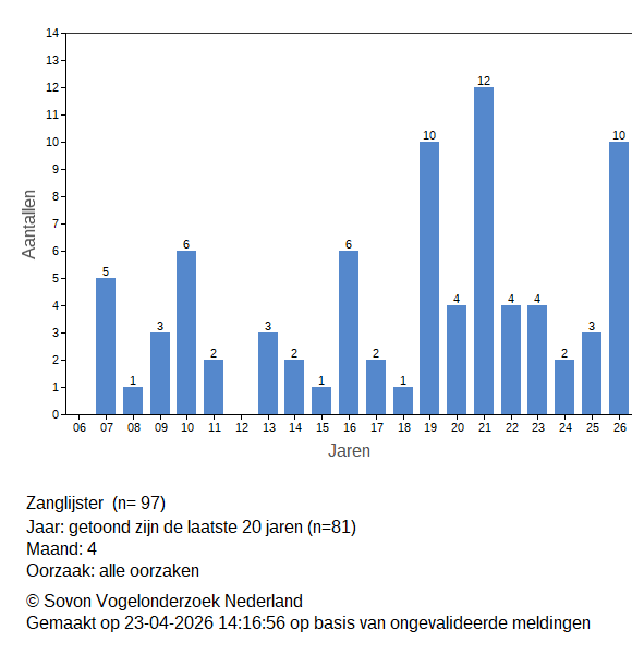 | Zanglijster | 10 | 5.1 |