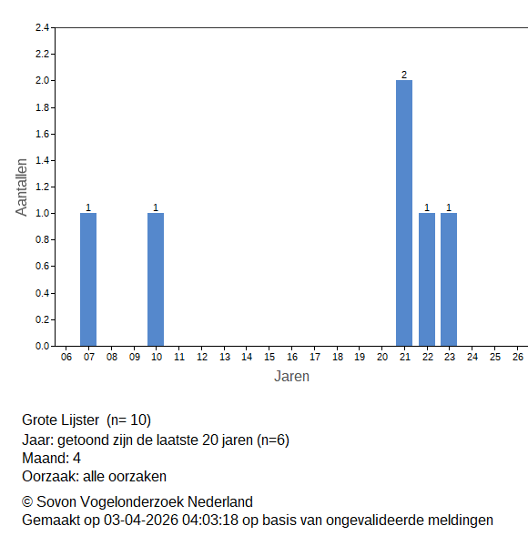 Op deze pagina zie je de aantallen dode vogels die gemeld zijn via de dode vogel invoer. Alle meldingen (incl. ongevalideerde) zijn daarin opgenomen.
