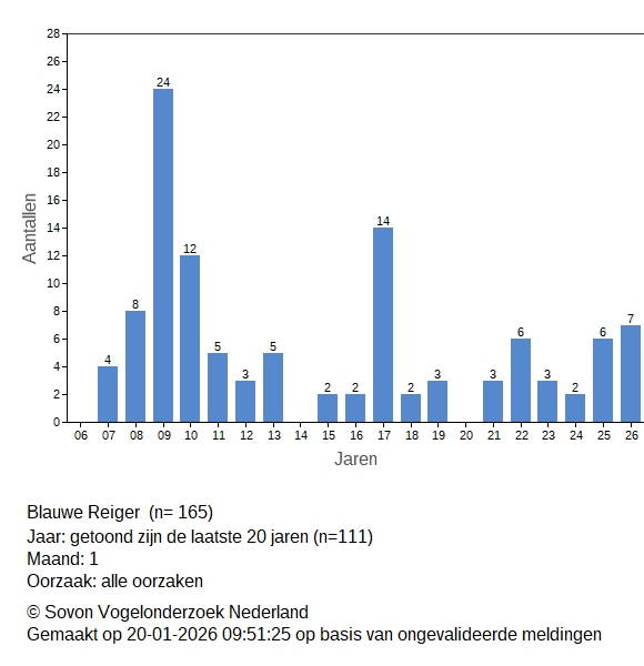 Op deze pagina zie je de aantallen dode vogels die gemeld zijn via de dode vogel invoer. Alle meldingen (incl. ongevalideerde) zijn daarin opgenomen.