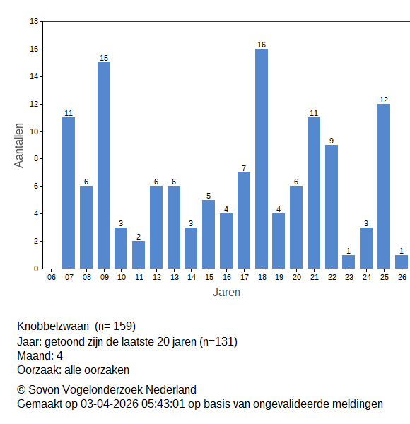 Op deze pagina zie je de aantallen dode vogels die gemeld zijn via de dode vogel invoer. Alle meldingen (incl. ongevalideerde) zijn daarin opgenomen.