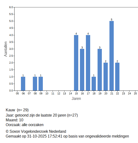 Op deze pagina zie je de aantallen dode vogels die gemeld zijn via de dode vogel invoer. Alle meldingen (incl. ongevalideerde) zijn daarin opgenomen.