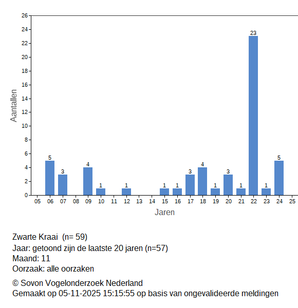 Op deze pagina zie je de aantallen dode vogels die gemeld zijn via de dode vogel invoer. Alle meldingen (incl. ongevalideerde) zijn daarin opgenomen.