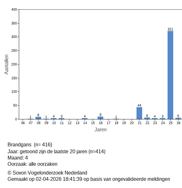 Op deze pagina zie je de aantallen dode vogels die gemeld zijn via de dode vogel invoer. Alle meldingen (incl. ongevalideerde) zijn daarin opgenomen.