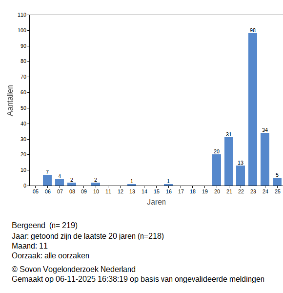 Aantal dode vogels Bergeend November 2025