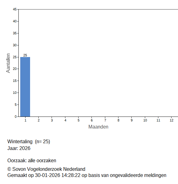 Op deze pagina zie je de aantallen dode vogels die gemeld zijn via de dode vogel invoer. Alle meldingen (incl. ongevalideerde) zijn daarin opgenomen.
