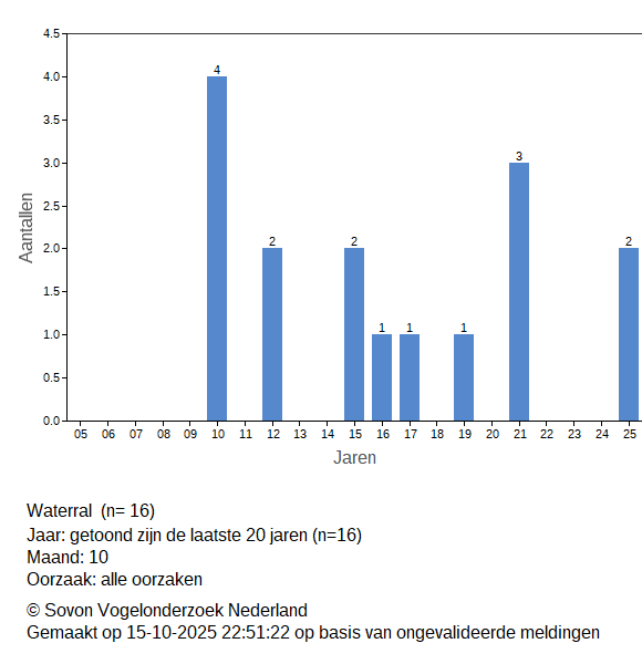Op deze pagina zie je de aantallen dode vogels die gemeld zijn via de dode vogel invoer. Alle meldingen (incl. ongevalideerde) zijn daarin opgenomen.