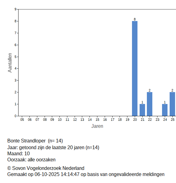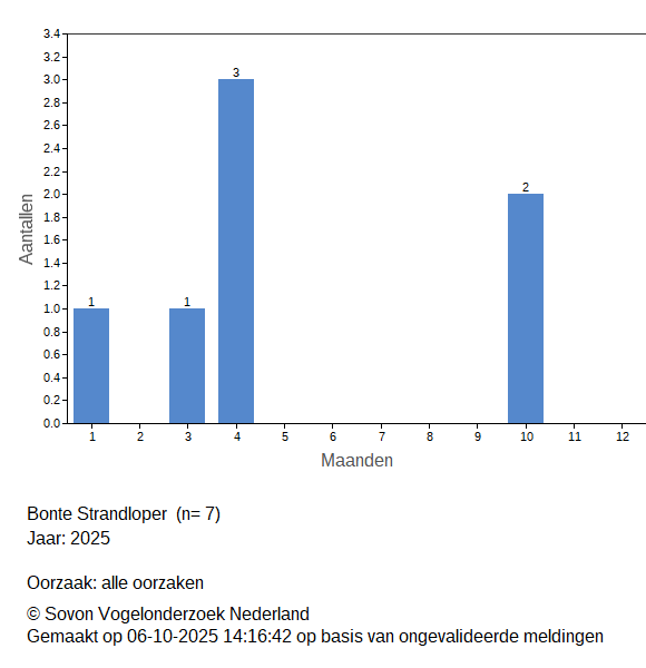 Aantal dode vogels Bonte Strandloper Oktober 2025