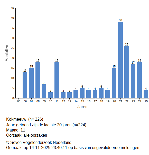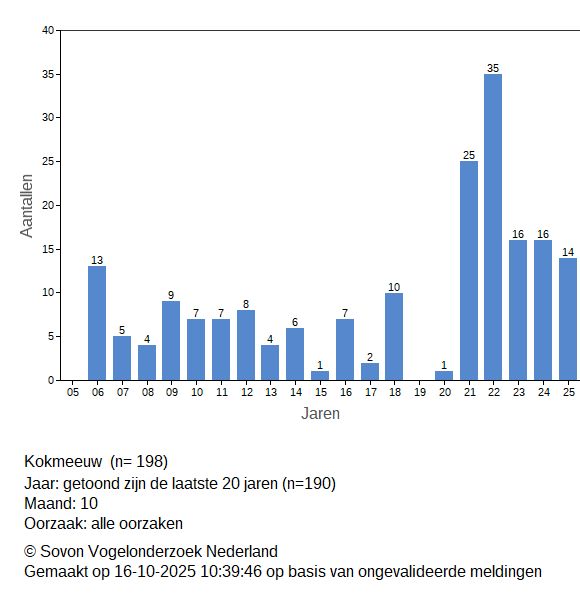 Op deze pagina zie je de aantallen dode vogels die gemeld zijn via de dode vogel invoer. Alle meldingen (incl. ongevalideerde) zijn daarin opgenomen.