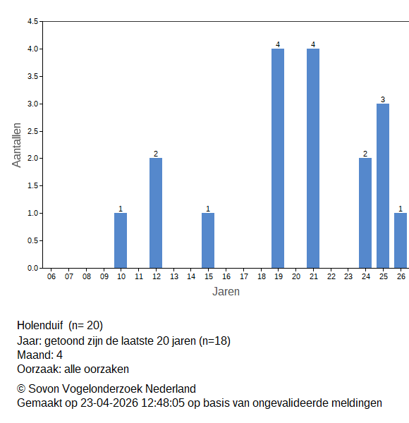 Aantal dode vogels Holenduif April 2026