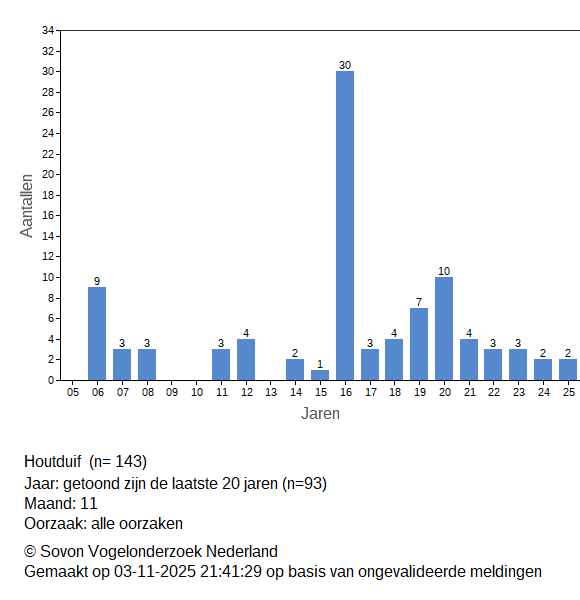 Op deze pagina zie je de aantallen dode vogels die gemeld zijn via de dode vogel invoer. Alle meldingen (incl. ongevalideerde) zijn daarin opgenomen.