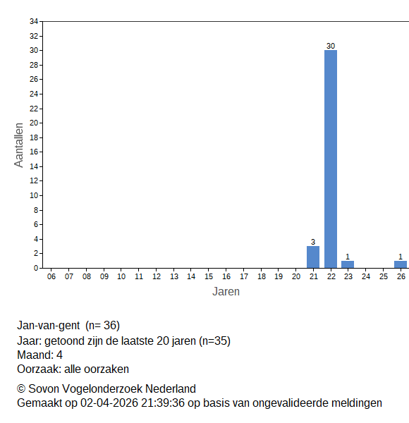 Op deze pagina zie je de aantallen dode vogels die gemeld zijn via de dode vogel invoer. Alle meldingen (incl. ongevalideerde) zijn daarin opgenomen.